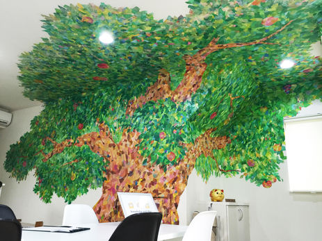 貼る枠を描いておけば、迷うことなく自由の貼れる。 たくさんの人の感性が混ざり合うことで、想像を超える素敵な配色が出来上がるのです。